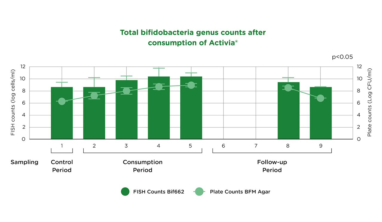 B.lactis CNCM 1-2494 successfully survives passage through the gastrointestinal tract following daily Activia® consumption over 4 weeks.